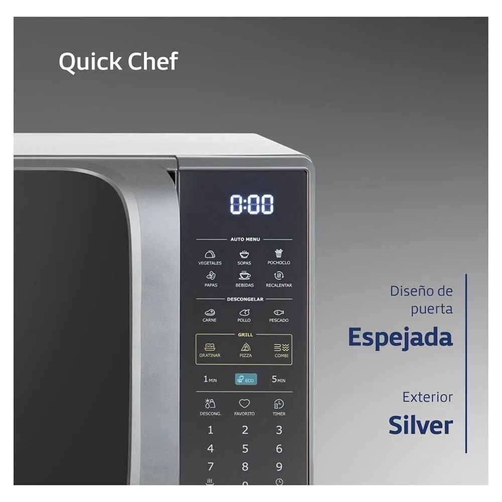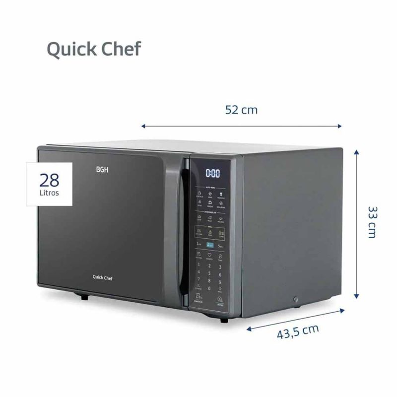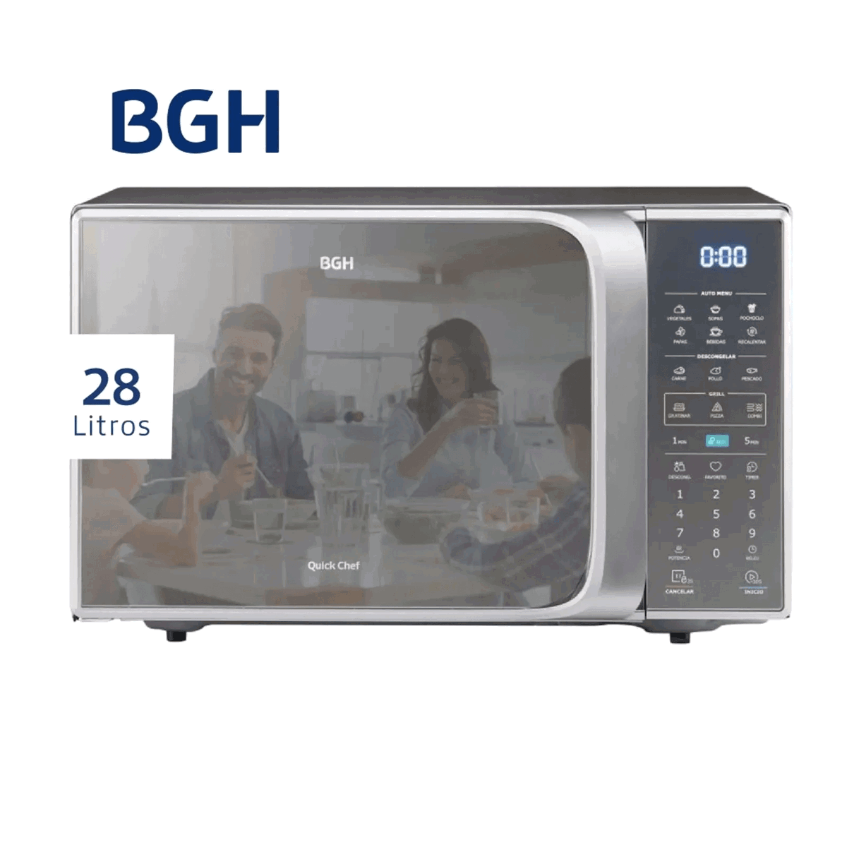 Prepara deliciosas comidas en este microondas de 28 litros de capacidad, con potencia total de 900W y grill eléctrico para darle un toque dorado a tus platillos. Su color plata le dará un toque moderno a tu cocina. Además, este microondas cuenta con función de descongelado, para que puedas preparar tus recetas favoritas rápidamente. Disfruta de la comodidad y versatilidad que te ofrece este electrodoméstico de BGH.
