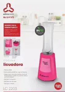 Disfruta de tus batidos y smoothies favoritos en cualquier lugar con la Licuadora portátil Ultracomb Mixer To Go LC-2203. Su diseño compacto y portátil te permite llevarla contigo a donde quieras, facilitando la preparación de bebidas saludables y deliciosas en cuestión de segundos. Con una capacidad de 600 mL y una potencia de 350 W, esta licuadora es perfecta para mezclar frutas, verduras y otros ingredientes de manera rápida y eficiente. La jarra de plástico es resistente y fácil de limpiar, mientras que la cuchilla de acero inoxidable garantiza una mezcla uniforme y durabilidad. Aunque no es apta para picar hielo, su única velocidad es suficiente para obtener resultados sorprendentes en tus recetas. Lleva contigo la Licuadora portátil Ultracomb Mixer To Go LC-2203 y disfruta de una vida más saludable y activa en todo momento.