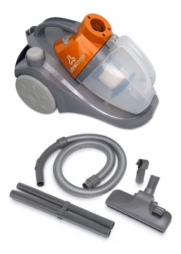 La Aspiradora Trineo Ultracomb Canister Bagless 1.2L viene con accesorios útiles como una boquilla multiuso y un cepillo para pisos y alfombras, lo que te permite adaptar la limpieza a tus necesidades específicas. Su diseño en color gris y naranja le da un toque moderno y atractivo, perfecto para cualquier estilo de decoración.