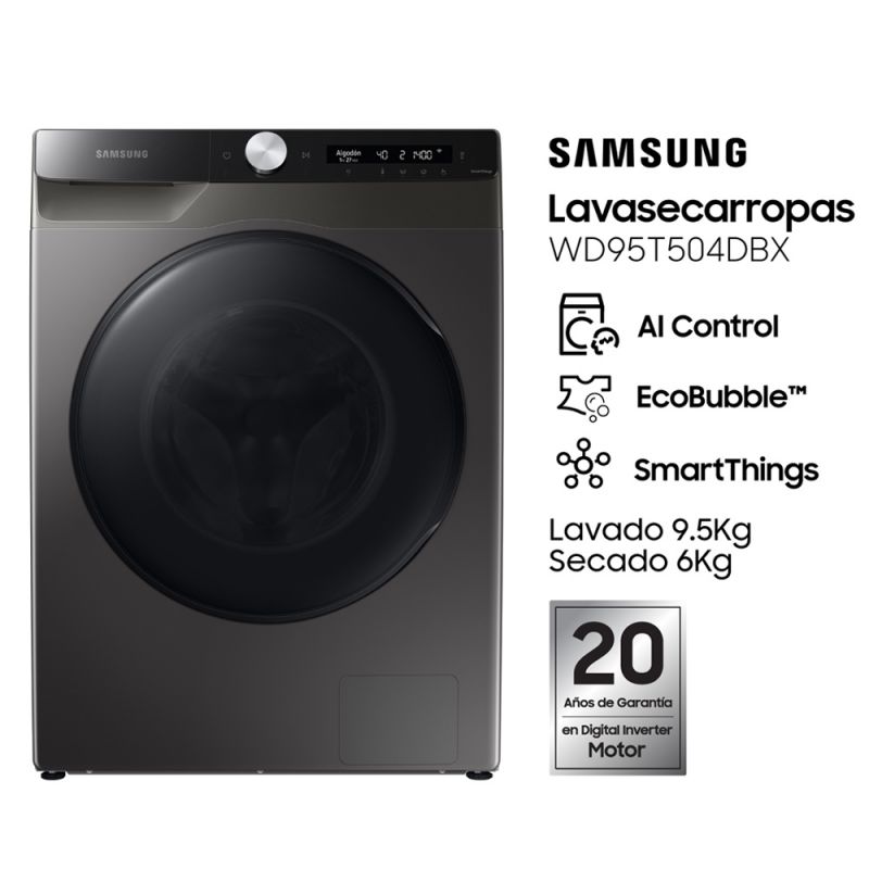 Caracteristicas Adicionales Lavado Inteligente, Control IA / SmartThings / Ecobubble / Tecnología Digital Inverter / Air Wash - Desinfecta con aire caliente / Sanitización por vapor / Drum Clean: Higiénicamente limpio