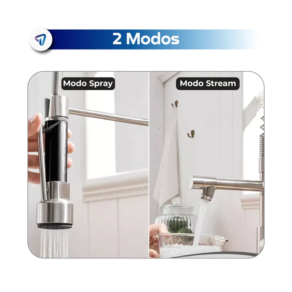 Pico flexible y giratorio 360° – Mayor alcance y comodidad en el lavado.