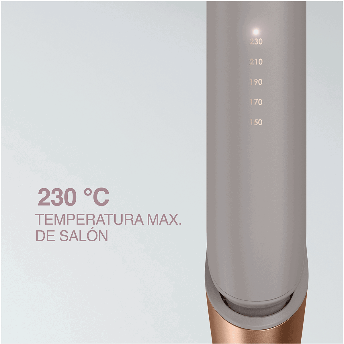 5 ajustes de temperatura desde 150 °C / 300 °F hasta 230 °C / 450 °F