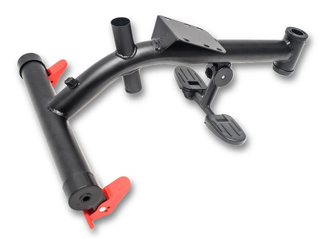 Asiento giratorio 360° - Apoya pies rebatible - Manija direccional con porta vaso y altura regulable - Baranda desmontable