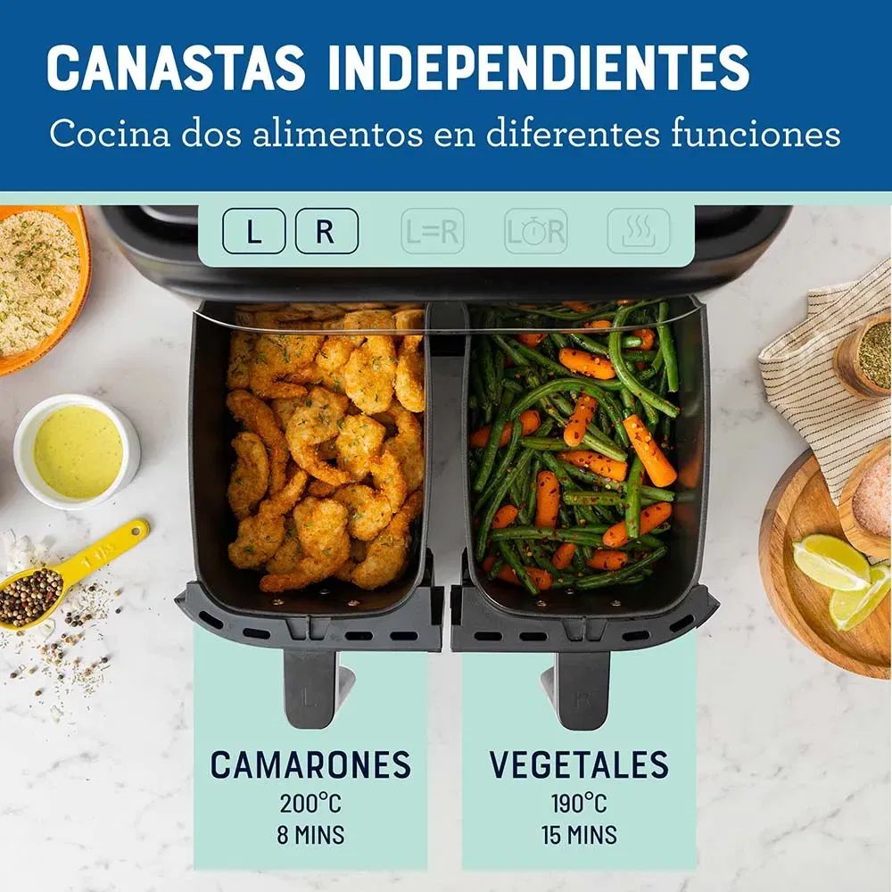 4 modos de uso: canastas independientes, canasta dual, canastas sincronizadas, precalentar