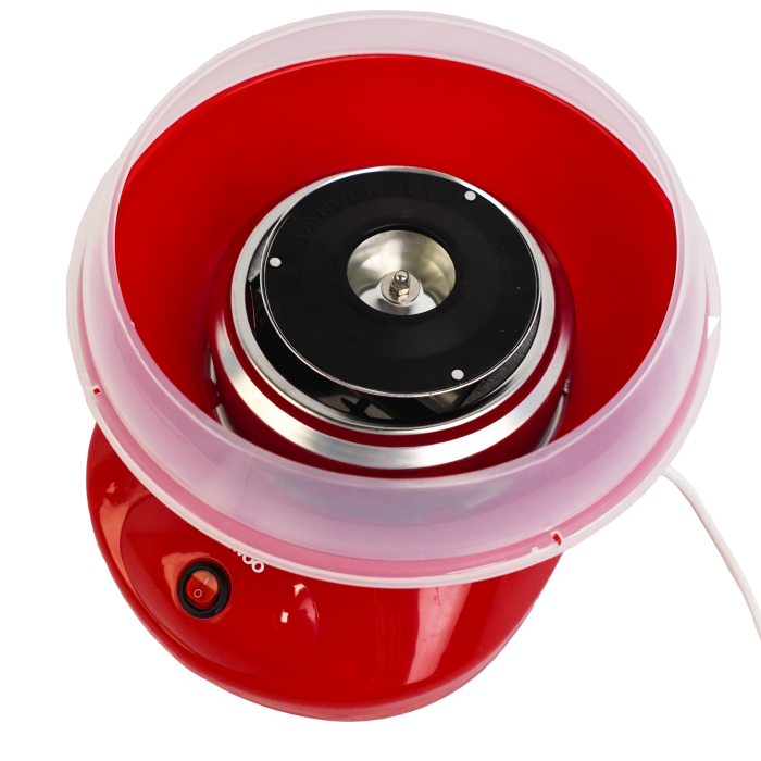 Hace de tu casa una feria y hace feliz a tus hijos con algodón de azúcar. Tan fácil como insertar el azúcar, usar los palitos de bambú que vienen con el producto y dar vueltas para hacer tus copos grandes y ricos!