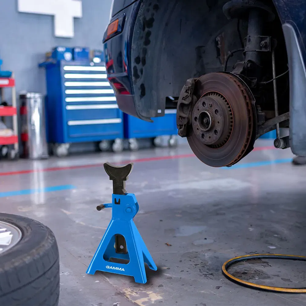 El Juego de Caballetes 3T HDM-916 incluye dos unidades diseñadas para soportar cargas de hasta 3 toneladas. Con una altura ajustable entre 285 mm y 425 mm, son ideales para sostener de manera segura un extremo del vehículo durante trabajos de mantenimiento.