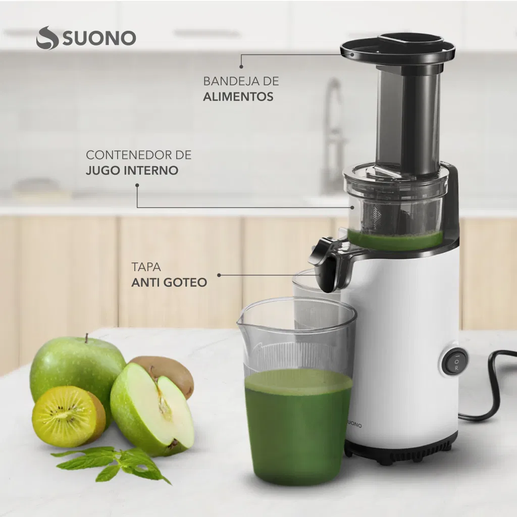 Mini Juguera Eléctrica Suono 600ml con Extracción Lenta 100W: Más nutrientes en cada jugo
