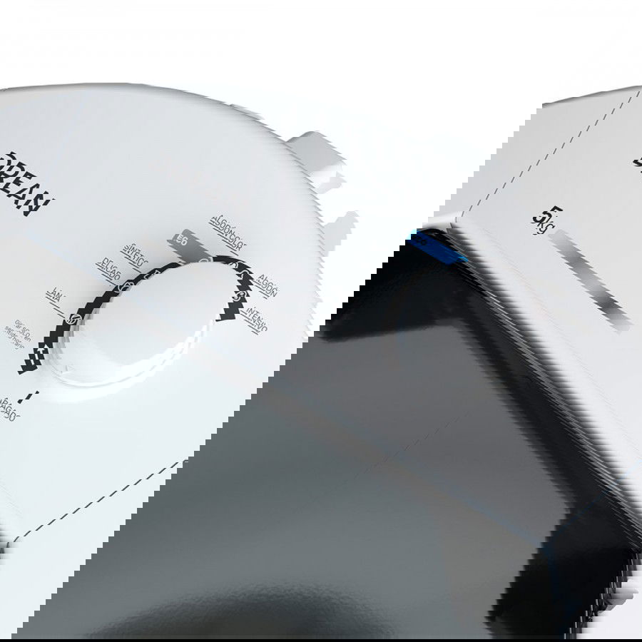Lavarropas semiautomático de carga superior. Color blanco. Capacidad de lavado de 5 Kg. Posee 7 programas: Lana, Delicado, Sintético, Eco, Algodón color, Algodón, Intensivo. Sistema de lavado oriental que garantizan una limpieza más uniforme y un mayor movimiento y rotación de las prendas. Control superior con perilla. Posee tapa transparente para mayor visibilidad. Gabinete de polycron con tapa integrada. Carga y descarga de agua manual. Sin centrifugado. Motor termoprotegido. Origen Argentina.