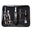 Este kit de 15 piezas es un completo juego de peluquería perfecto para viajar que cubre todas sus necesidades de corte: Pinzas, Tijeras, Cortauñas, Cortador para detalles, Mango del cortador, Cortador para nariz y oídos, Peines pequeños 4 longitudes, Cepillo de dientes, Lima, Botella de aceite, Cepillo para limpiar, Peine para bigote, Peine para el cabello
