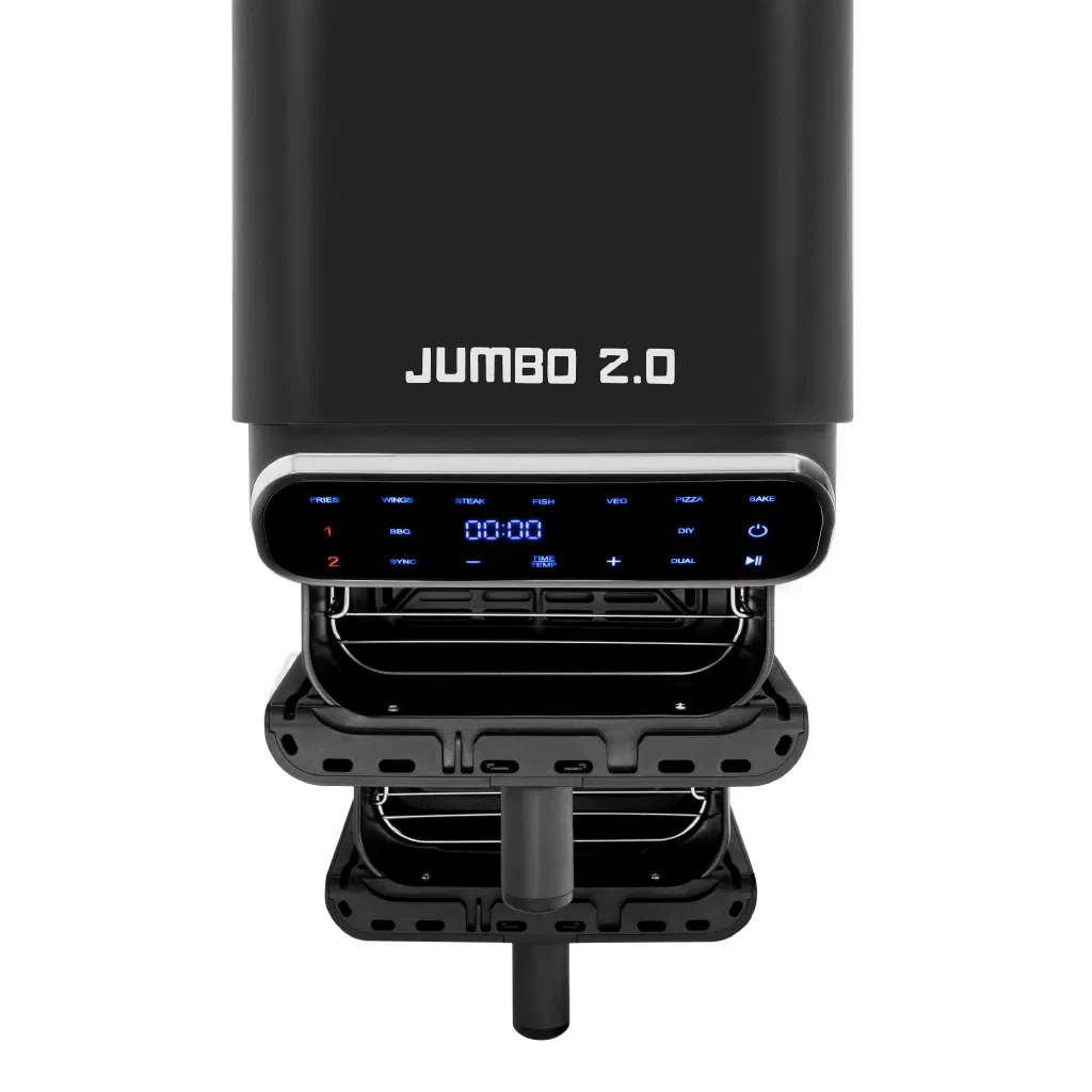 La JUMBO 2.0 es como tener dos freidoras en una: más capacidad, más eficiencia y más sabor en cada comida.
