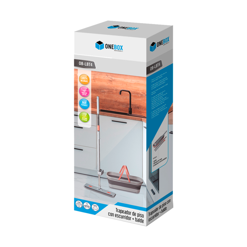 Balde con fuelle de goma que permite plegarlo completamente luego de utilizarlo para ahorrar espacio. Posee ruedas para desplazar el balde fácilmente. El mango del trapeador posee un escurrido de fácil manipulación. El cabezal se adapta a la inclinación deseada y necesaria para cada superficie. Se incluye - 1 balde - 1 mango de mopa - 1 mopa de microfibra lavable