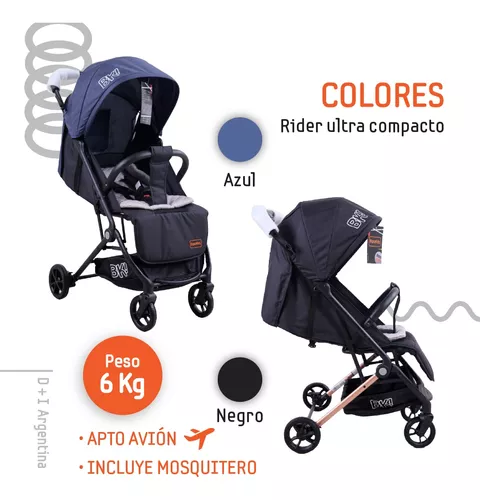 Coche ultra liviano,súper cómodo para moverse sola, con el bebé en brazos vas a poder plegarlo con una mano, además al cerrar tipo valija de mano , las medidas hacen que sea más práctico para el baúl del auto (ocupa mucho menos que un paragüita), una vez plegado se puede llevar desde su manija como si fuera un "carry on" o valija de mano. El respaldo se acuesta todo y el apoya pie tiene posiciones, lo cual lo hace apto para recién nacidos (regulación cuna). Viene en dos diseños con telas suaves en el asiento y telas Anti manchas en la capota, los mismos son desarrollos y exclusivos de BIPO.