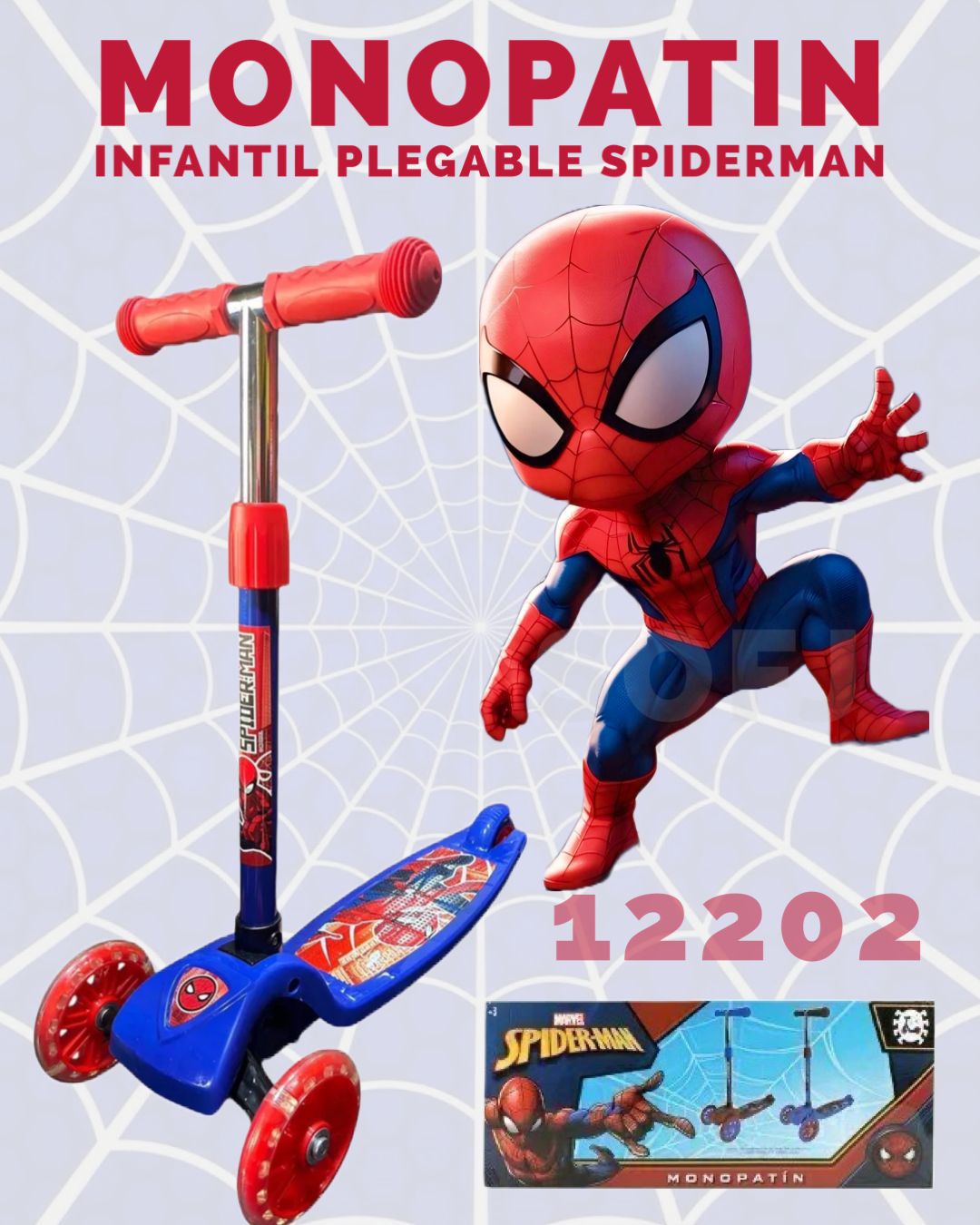 MONOPATIN DE SPIDERMAN AZUL Y ROJO