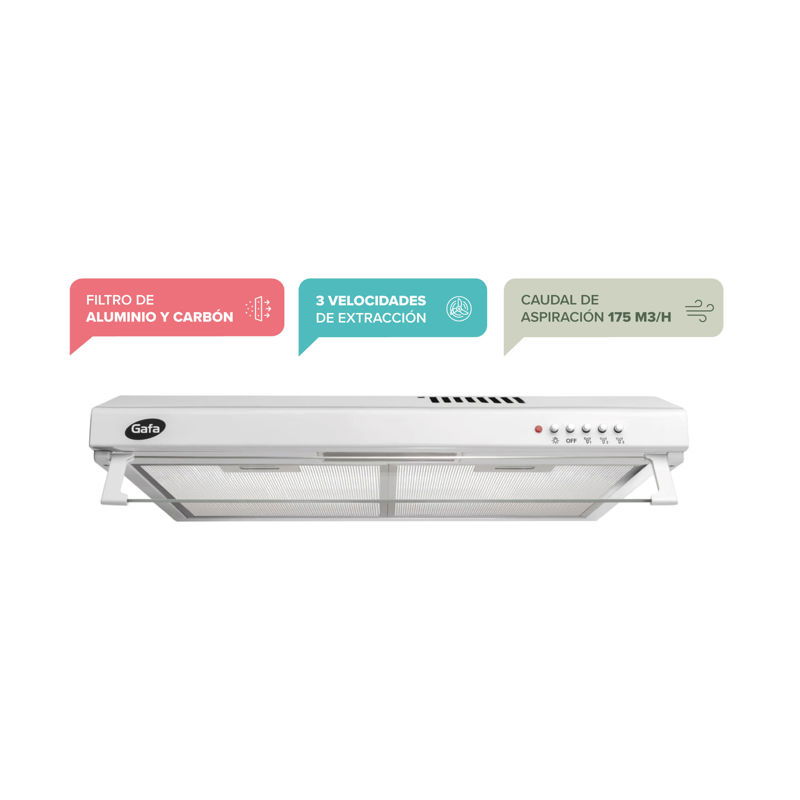 El purificador de aire Gafa es la solución perfecta para mantener tu cocina limpia y libre de olores. Cuenta con 3 niveles de potencia de extracción para que puedas adaptarlo a tus necesidades, y un filtro antigrasa metálico que captura las partículas de grasa y suciedad del aire. Además, tiene una luz incorporada para iluminar la cocina y facilitar la cocción de alimentos.