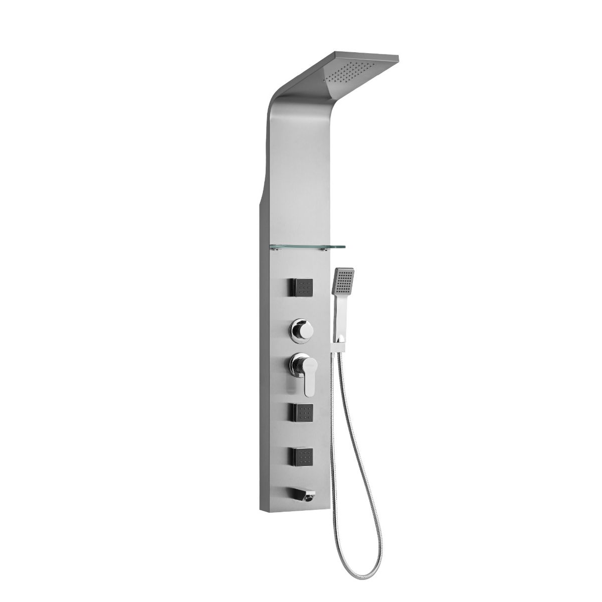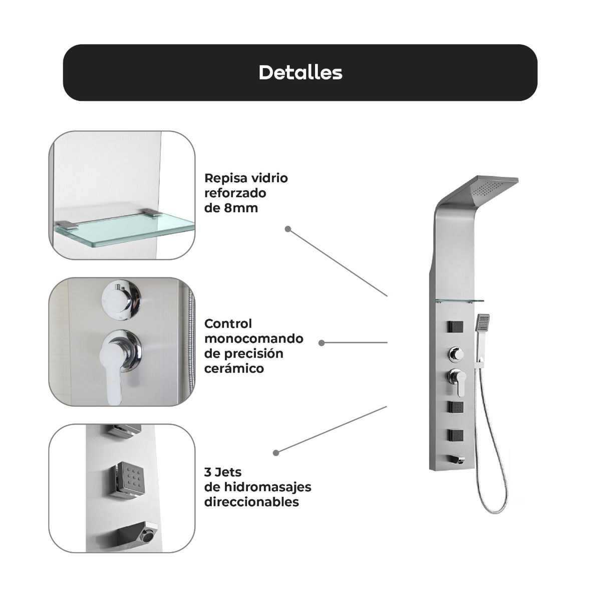 Funciones: Ducha lluvia, ducha de mano, jets de masaje y caño de llenado de bañera.