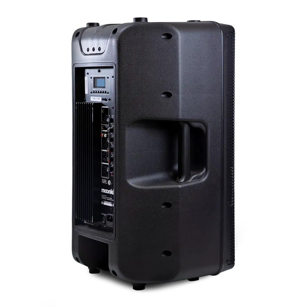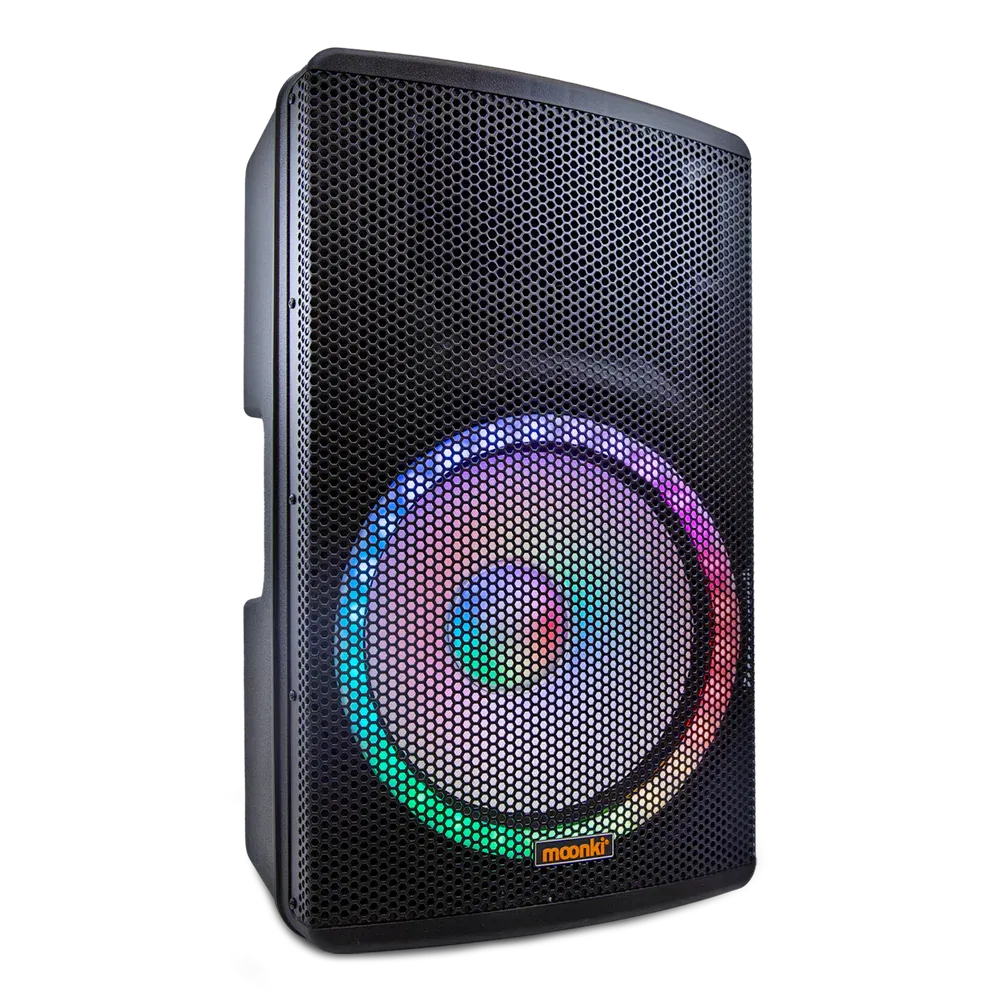 El Moonki Sound MS-P15BW es un parlante de audio profesional de inigualable potencia sonora, refinada calidad de audio y precisa fidelidad. Este distintivo dispositivo contiene multiplicidad de conexiones: aparte de la conectividad Bluetooth, presenta doble entrada de micrófono (con dos micrófonos inalámbricos incluidos) y otras alternativas de línea SpeakOn. Exhibe con altura todas las condiciones que un parlante de audio profesional debe ofrecer para satisfacer las demandas de uso profesional.