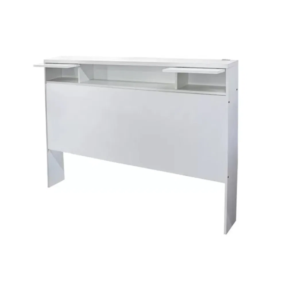 Respaldo para sommier de hasta 2 y 1/2 plazas de melamina. Estante central. Dos gavetas con puerta batiente. Color Blanco. (Disponible en otros colores).