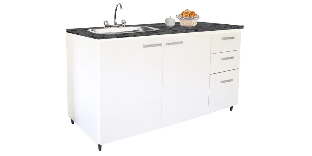 Práctico, moderno y funcional, este mueble bajo mesada construido en Melamina, es indispensable para organizar tu cocina. Su material permite un fácil mantenimiento. Cuenta con 3 cajones con correderas metálicas y 2 puertas espaciosas para almacenar todos tus elementos de cocina. Esta línea de muebles viene desarmada, preparada para ensamblar de manera rápida y simple. Dentro de cada caja podrás encontrar las correspondientes instrucciones y los componentes necesarios para su correcto armado. Disponible en color blanco o en las combinaciones de blanco con puertas y cajones tabaco o blanco con puertas y cajones gris grafito. Combinable con otros muebles de cocina Platinum.