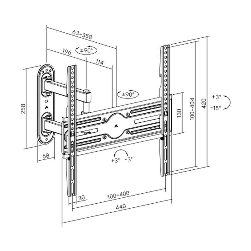 Este soporte de TV móvil es ideal para televisores de 32" a 65" extensible hasta 35.8 cm y también es compatible con modelos curvos. Fabricado con materiales robustos, garantiza la seguridad y estabilidad de tu televisor. Su diseño delgado y minimalista permite un montaje discreto y elegante en la pared, optimizando el espacio en tu hogar. Fácil de instalar, perfecto para quienes buscan una solución sencilla y efectiva para montar su televisor.