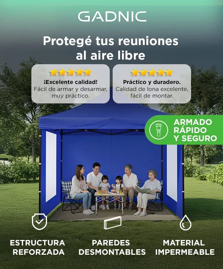 Estructura plegable 3x3 m, fácil de armar y guardar.
