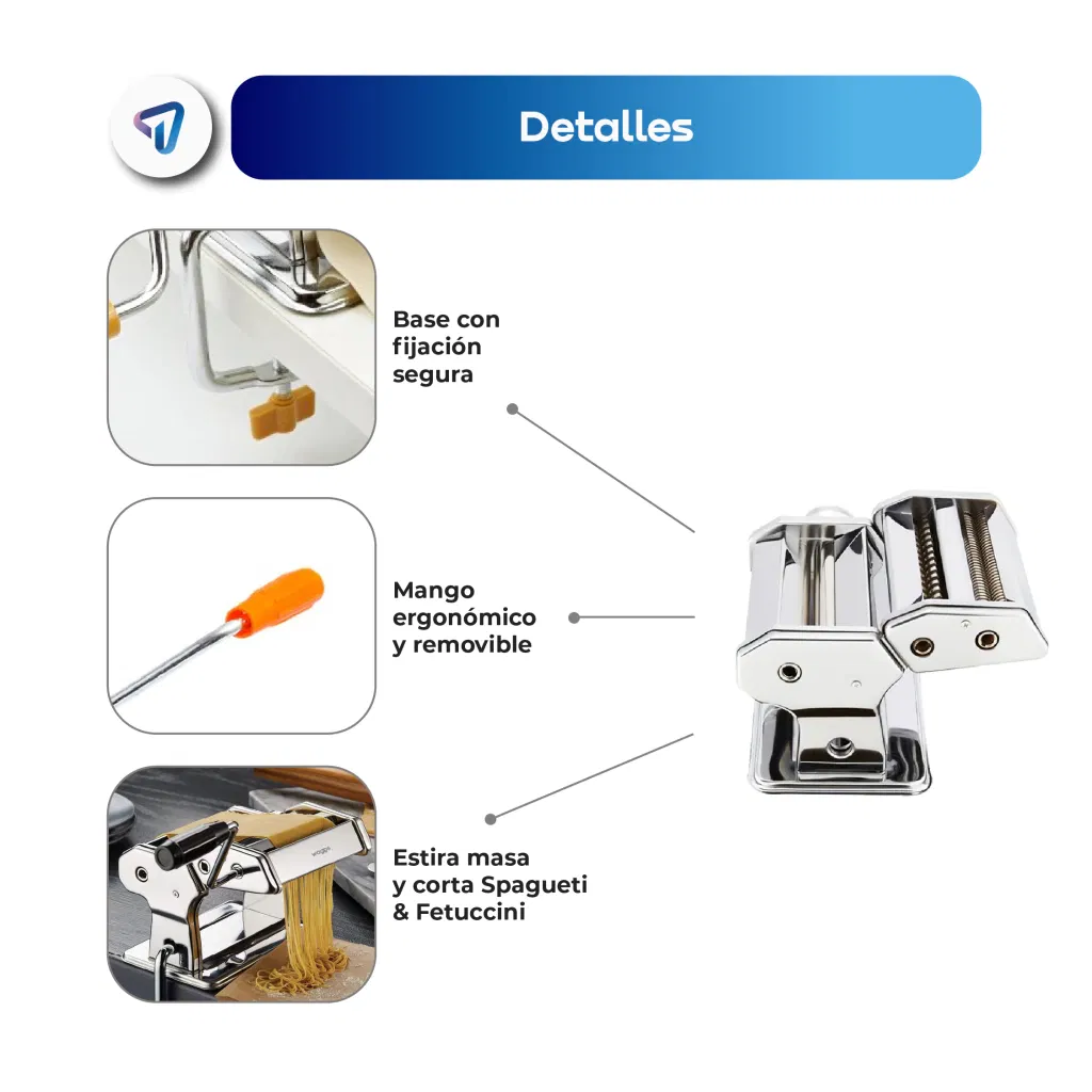 3 tipos de pasta en un solo equipo: Fettuccine, lasaña y tallarines, listos para salir de tu cocina directo al plato.