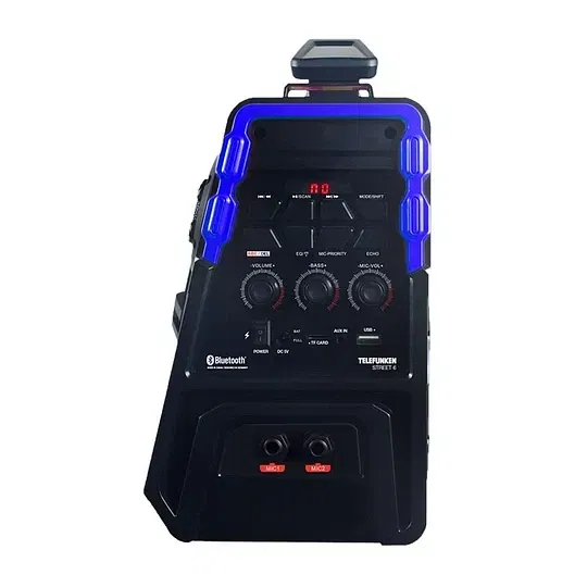 El Street 6 de TELEFUNKEN es un compacto sistema de sonido que posee batería interna, ideal para llevar a todas partes y a armar tu mini fiesta. Posee puerto USB, micro SB y conexión vía bluetooth para reproducir la música que más quieras desde un dispositivo móvil o Tablet. Además, posee puerto auxiliar e incluye un micrófono con cable y una correa para transportar el equipo de manera más fácil.