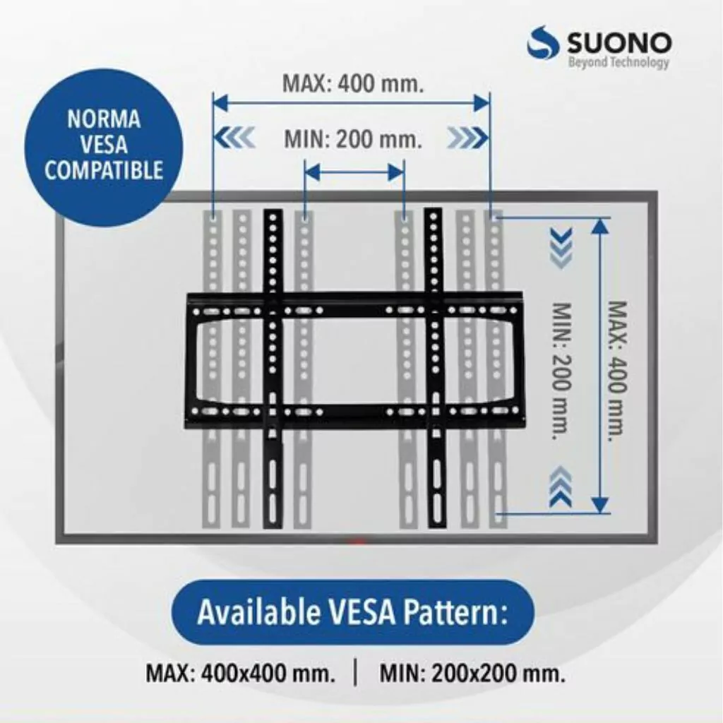 Mejora la estética y funcionalidad de tu espacio con el Soporte Fijo para TV, diseñado para ofrecer una solución segura y elegante para montar tu televisor en la pared. Ideal para quienes buscan maximizar el espacio y mejorar la experiencia visual en el hogar.