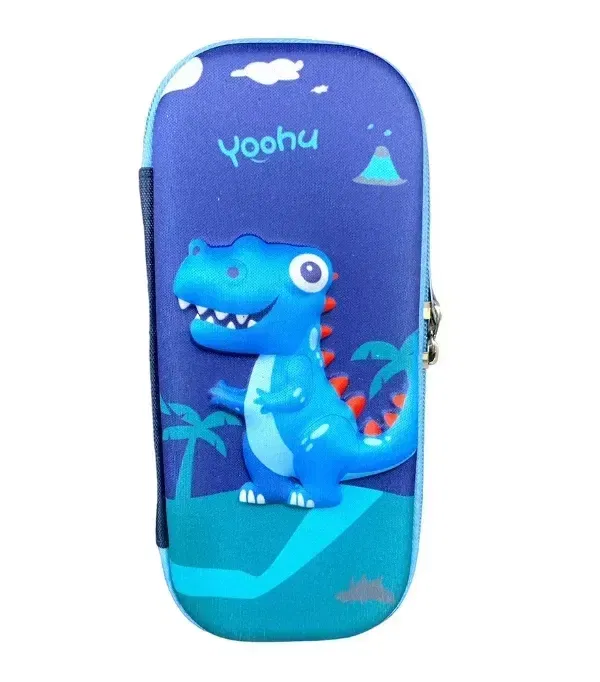 CARTUCHERA ESCOLAR RÍGIDA 22 CM X 10 CM DINO AZUL