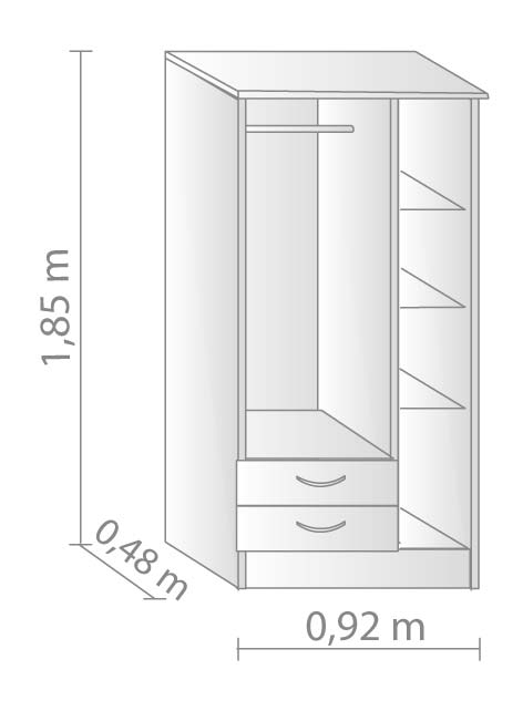 En este producto encontrarás la forma ideal de guardar todas tus prendas, cosmética y calzado sin ocupar un lugar considerable dentro de tu habitación, ya que está diseñado con 2 cajones con correderas metálicas, 1 barral, 1 estante inferior y tras la otra puerta 4 estantes (2 son regulables a 3 niveles que ya se encuentran pre-marcados para tu comodidad). Se logra así una óptima relación entre prestación-precio-y dimensiones. Su sistema de embalaje y armado en kit te permite transportarlo sin dificultades hasta su lugar de armado. Luego, podés desarmarlo para trasladarlo y armarlo nuevamente. Además es un producto modular que podés combinarlo con otros placares Platinum, manteniendo la línea y ocupando todo el espacio que desees. Disponible en colores blanco, gris andino, savana y tabaco. También combinable con otros productos de dormitorio (chifonier, cajoneras, mesas de luz, cabezal, etc.).