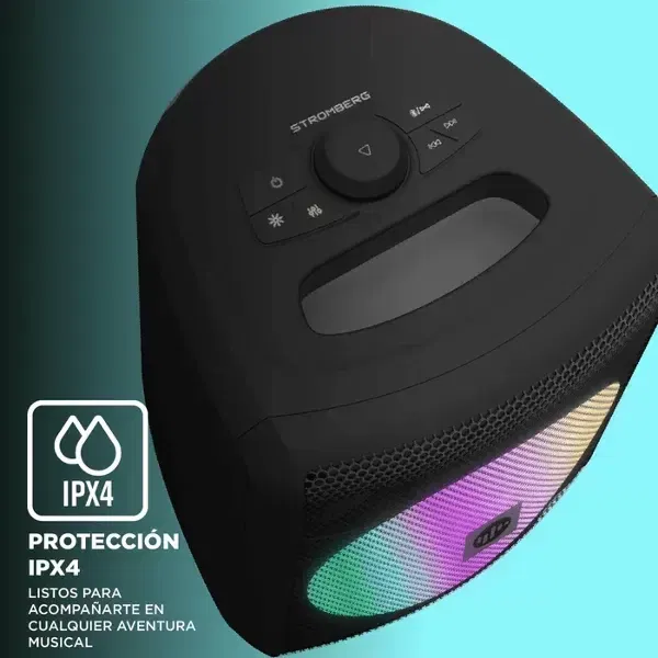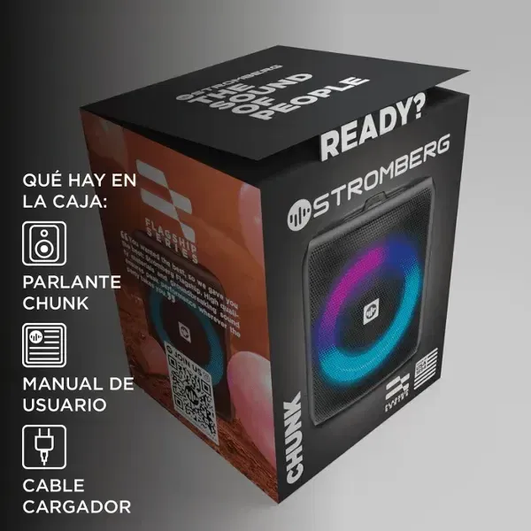 El parlante Stromberg Chunk es un dispositivo que abre un universo de emociones y experiencias. Sus luces LED RGB acompañan un viaje musical, ya sea al aire libre, en la comodidad del hogar o durante un relajante baño.