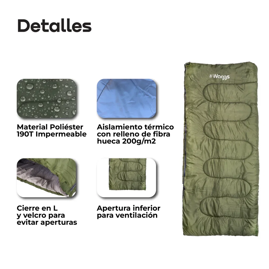 Descansá con la máxima comodidad en tus aventuras con la bolsa de dormir WAGGS BOLD03. Su diseño técnico equilibra abrigo, ligereza y resistencia para que cada noche al aire libre sea tan confortable como en casa. Ideal para acampadas, escapadas o viajes, ofrece un aislamiento térmico confiable y una textura interior suave que te envuelve en bienestar.
