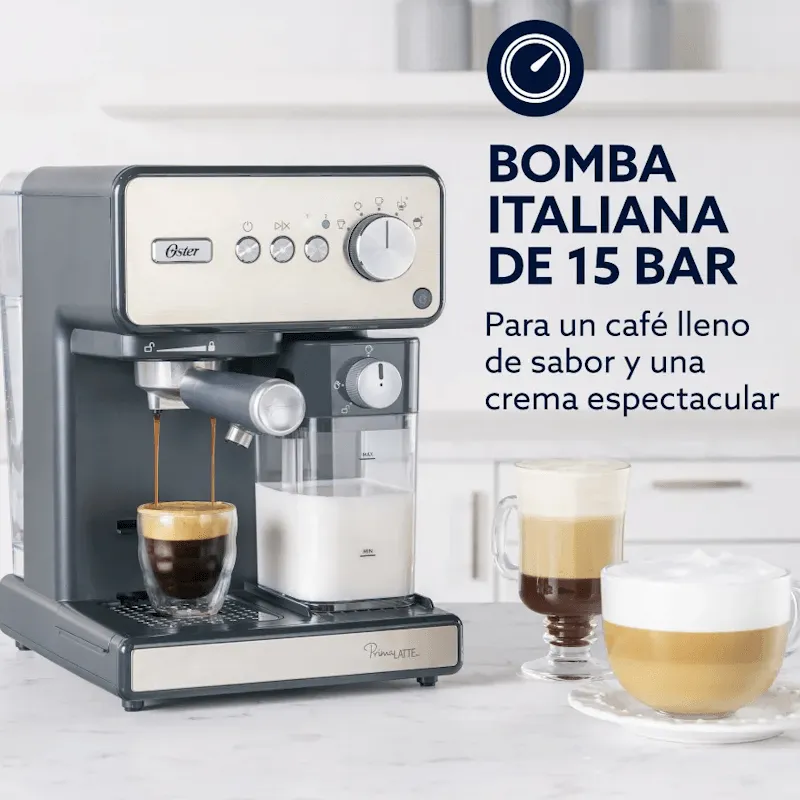 La Cafetera Expresso Oster EM6604SAR te permite disfrutar un café intenso y cremoso en casa, gracias a su bomba de 15 bares que extrae todo el sabor del grano. Su diseño práctico hace que preparar un espresso o un capuchino sea fácil incluso si no tenés experiencia previa. ¿Buscás una forma simple y rápida de mejorar tus mañanas?