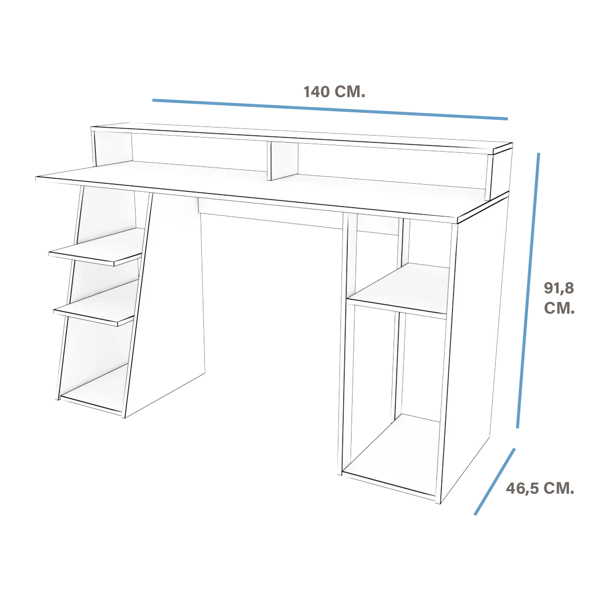 Escritorio Gammer Blanco c/ filo verde con alzada, 4 estantes, 1 estante para CPU, c/ luz LED
