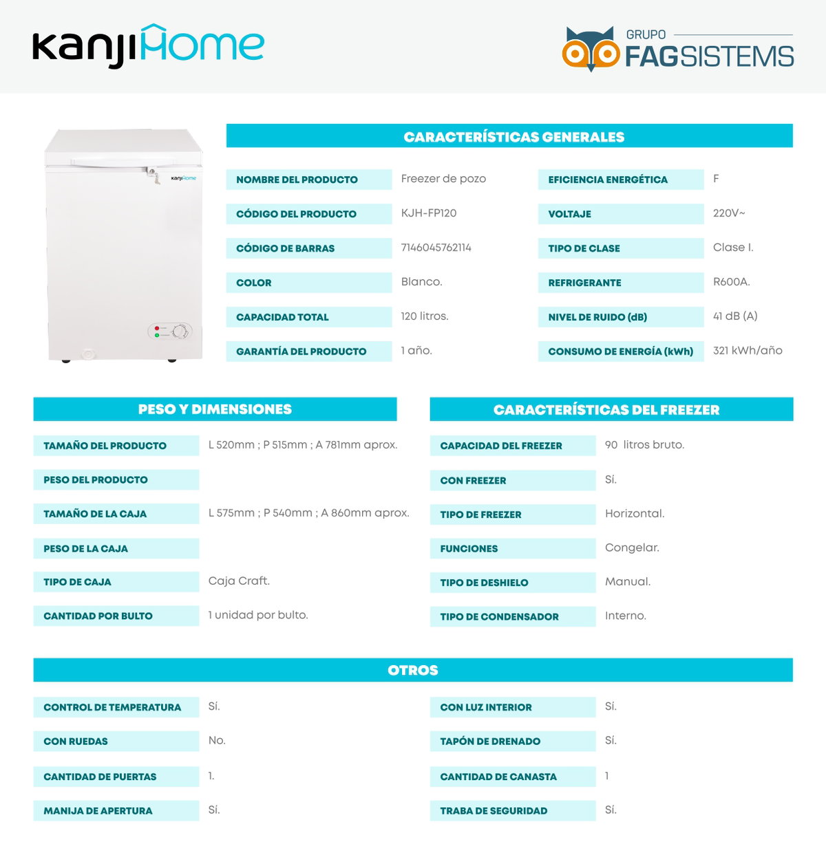 FREEZER DE POZO KANJI 120 LTS KJH-FP120