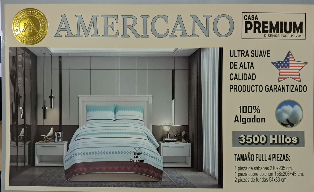 JUEGO DE SÁBANAS AMERICANO 4 PIEZAS 100% ALGODÓN