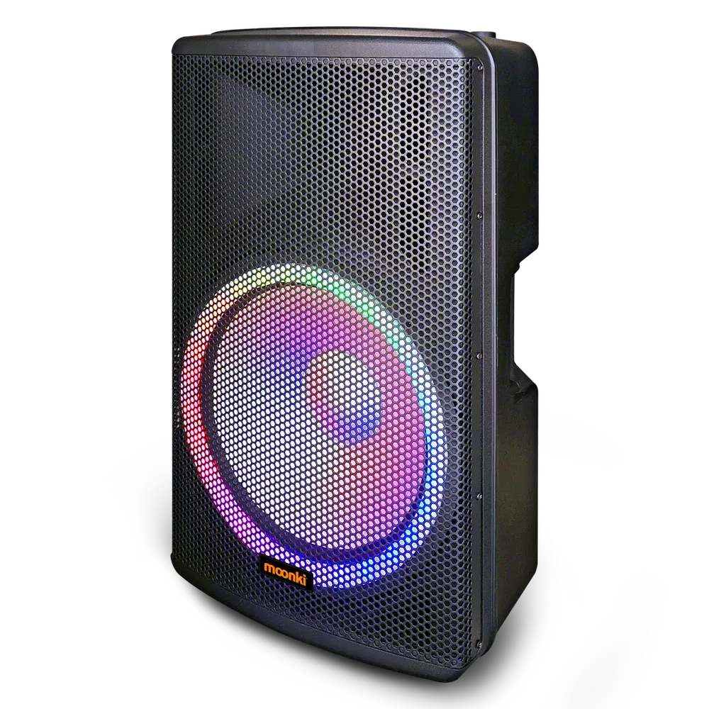 El Moonki Sound MS-P15BW es un parlante de audio profesional de inigualable potencia sonora, refinada calidad de audio y precisa fidelidad. Este distintivo dispositivo contiene multiplicidad de conexiones: aparte de la conectividad Bluetooth, presenta doble entrada de micrófono (con dos micrófonos inalámbricos incluidos) y otras alternativas de línea SpeakOn. Exhibe con altura todas las condiciones que un parlante de audio profesional debe ofrecer para satisfacer las demandas de uso profesional.