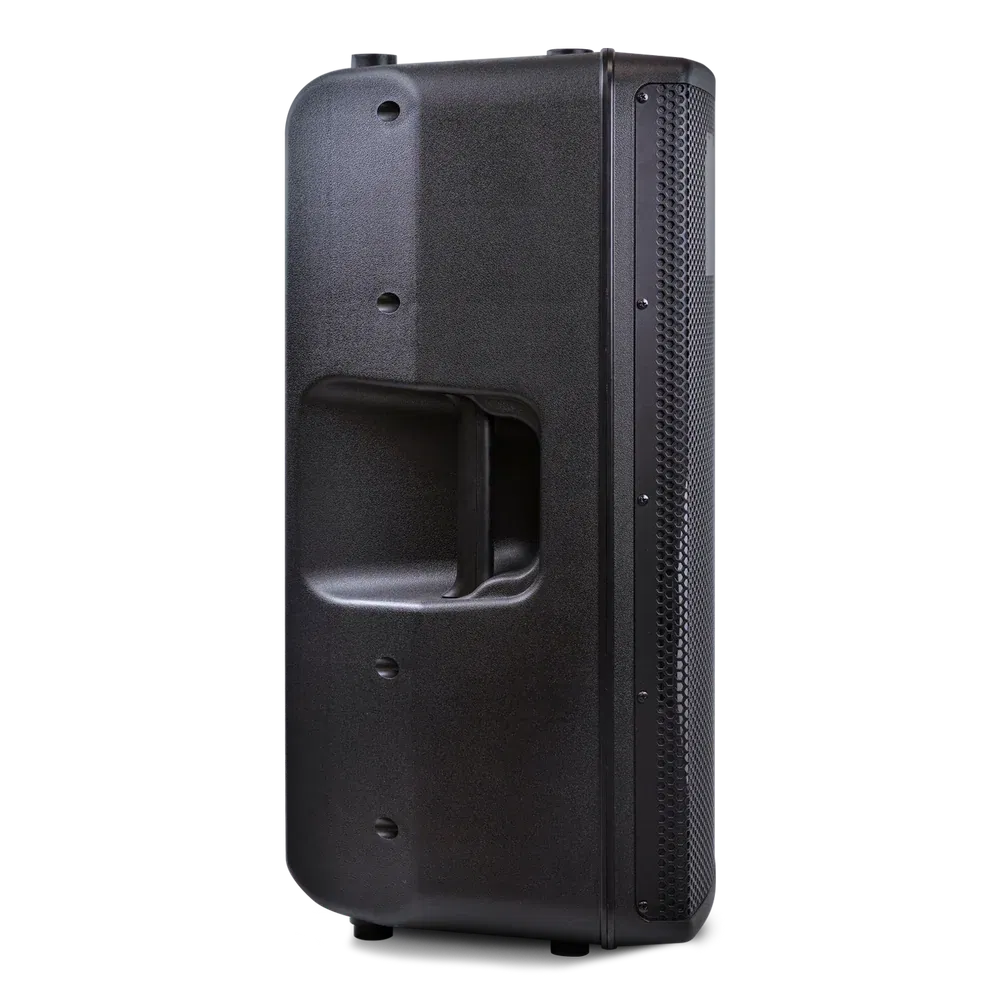 Todas sus funciones y posibilidades de uso son manejables desde el panel de control ubicado en su parte posterior, que expone las entradas, las perillas y la pantalla LED donde se muestran los valores elegidos. Extremadamente poderoso, hace vibrar hasta los huecos más recónditos, ya que su potencia sonora ultra rendidora es de 4000W PMPO (300W RMS). La formidable placa amplificadora de clase AB que lo compone acompaña esta característica aportándole sublime calidad de audio. Su configuración de dos vías es posibilitada por su doble woofer de 15¨ y tweeter de 1¨ que viabilizan al máximo los sonidos graves y agudos, respectivamente.